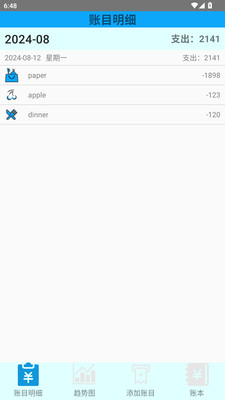 1、我们将软件打开并在线记录账单,可以直观的看到账本细节,如下图;