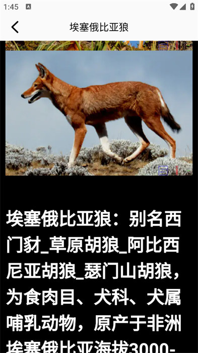 3、扫描自己想要识别的动物就会呈现详细的介绍信息;