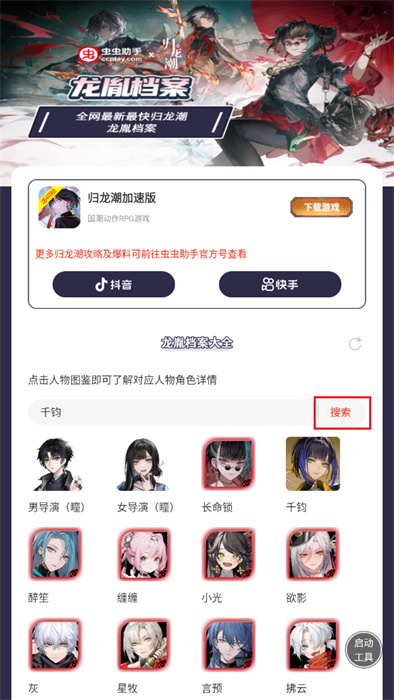 3、此时搜索框的下方将会出现所需搜索的角色图标,可以点击该图标以进行详情界面的进入;