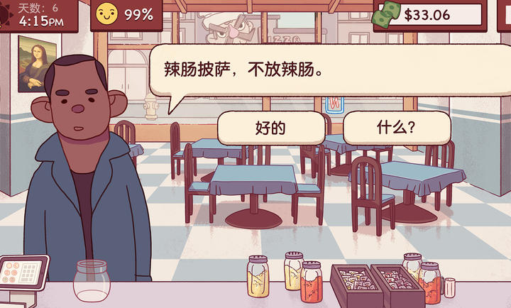 1、进入厨房之前需要接取顾客的任务才行,所以当现在的有制作披萨的任务后会自动进入厨房;