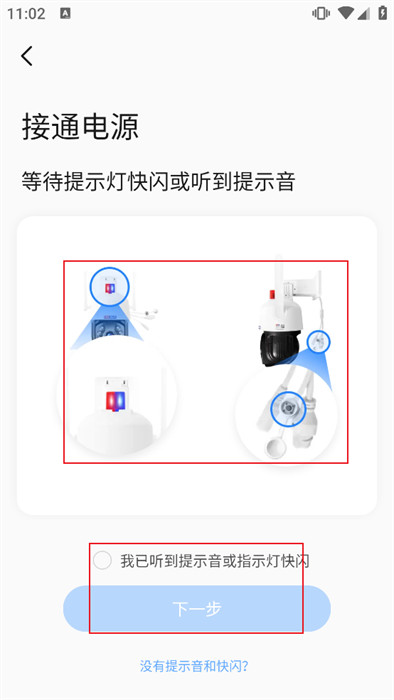 4、按照软件给出的提示,接通电源之后可以等待提示灯的声音,并点击下一步;