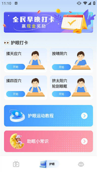 这里专门开辟了护眼的板块,大部分的用户在线了解护眼的方式,如眼保健操、避免电子产品等等全部都能尝试体验;