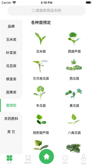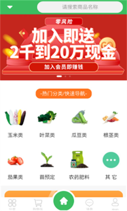 2、随后,就能进入到平台的首页,这里将常见的一些商品都进行了分类,如蔬菜、果苗等等;