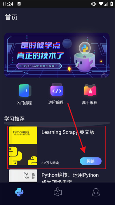 3、返回到首页,下方的各种英文资料都能订阅并浏览,点击【阅读】即可;