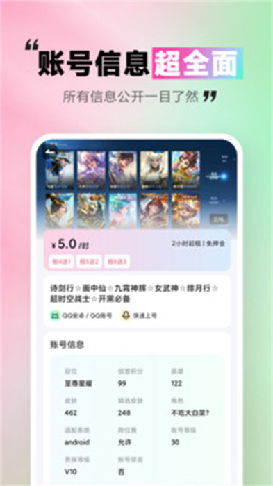 十分丰富而又全面的游戏账号资源的内容让用户们去进行选择,更多用户们的租号需求都能满足;