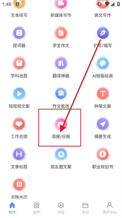 2、在首页向下滑动,可以看到很多常用的工具,直接点击【日报】,如下图;