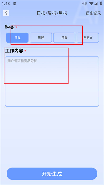 3、接着,在这里输入自己的工作要求,并点击最下方【立即生成】,如下图所示;