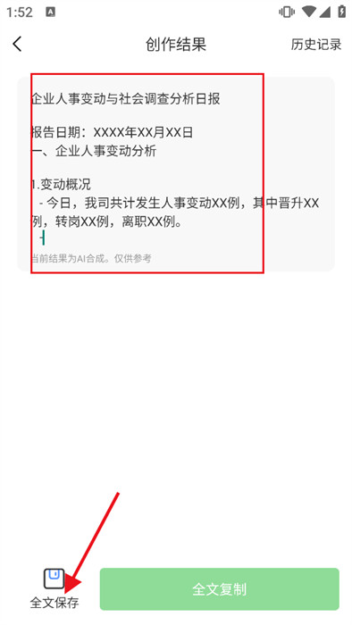 5、最后,可以看到ai生成的全部内容,如果满意可以点击全文保存,操作起来非常的简单。