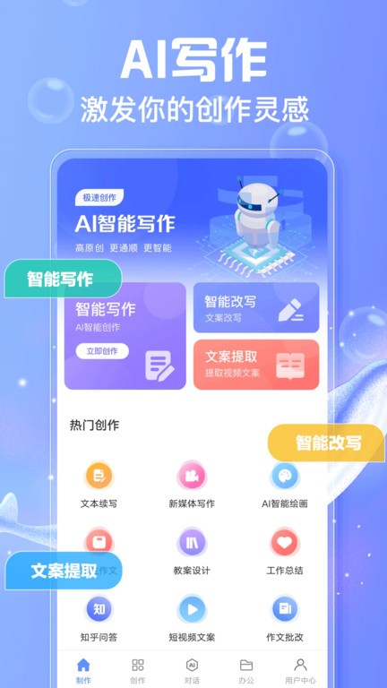 对于日常有需要创作方面需求的用户来说,可以尽情的使用软件,这里给大家准备了很多不同的扩写工具;