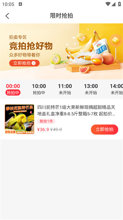 3、可以看到各个时间段限时抢购的商品资源和具体的价格;