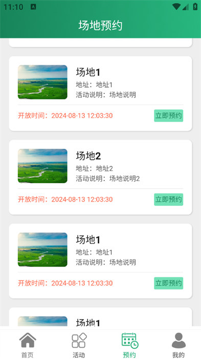 5、还能查看到各种各样的场地,直接在线上就能完成场地预约。