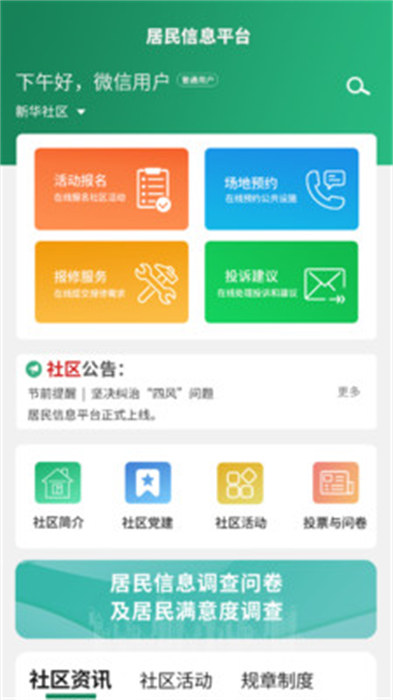 居民信息平台app是一款专门为了用户们查看社区公告等内容打造出来的软件,这款软件里面拥有十分丰富的功能内容,可以大大的提升社区整体的管理水平,大大的增强了用户们的获得感和满意的程度,全部都是一些非常实用的功能内容供用户们去进行使用,使用自己所需要使用的功能内容就可以了,操作都非常的简单轻松,不需要任何复杂繁琐的操作就能完成社区资讯信息内容的查看和了解,欢迎有需要查看社区资讯等信息内容的用户们去进行下载体验的操作。