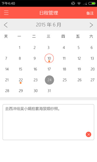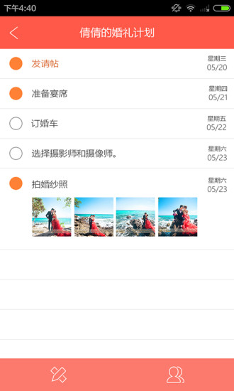 5.日程管理:查看已经下单的客户婚礼日程表,方便进行工作管理,以及管理自己的可接单日期。
