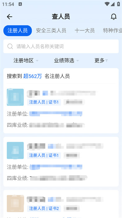 4、还能够搜索人员名称的关键词查找到注册的人员和安全三类人员等。