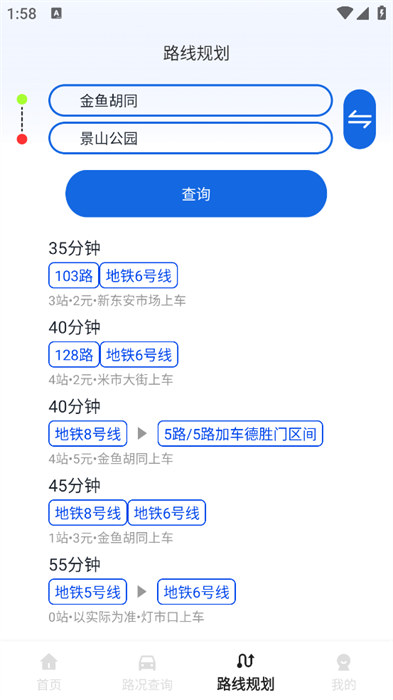 3、输入用户们自己的起点和目的地就能帮助用户们规划出行的方式;