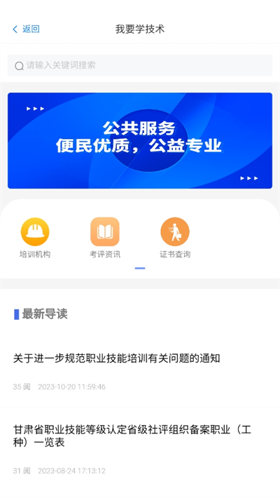 2、接着就能在这里看到相关的培训机构、考评咨询和证书查询等,还可通过关键词查找;