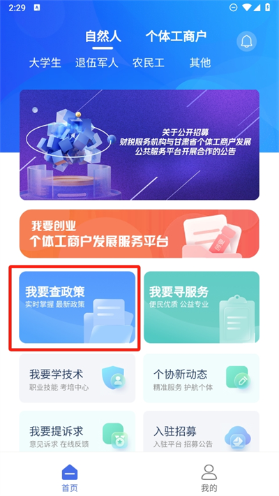 3、如果想要查看祖新的政策信息,可以直接在我要查政策这项栏目中查询;