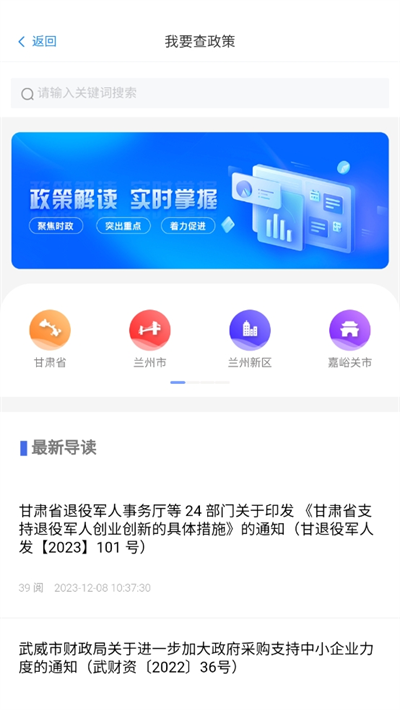 4、在这里可以了解有关甘肃省所有政策信息,及时的做好相关政策的关注和了解。