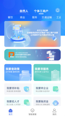甘肃个体户能够为甘肃个体商户们提供最新的政策信息平台,有各级政府相关的部门带来更加全面的信息平台管理,了解最新个体工商户的发展政策信息内容,并且还能带来更加精准化的相关业务服务,线上支持更加精准化的统计、检测和分析个体工商户发展的状况信息,并且还能够为大家带来个体工商户分型分类的培育和精准化的相对帮扶政策,实现更加优质化的服务。