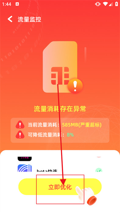 4、最后,点击【立即优化】,这里会不断的整理其中的软件,短时间内就能感受到变化。