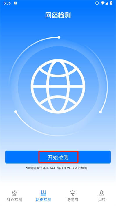 1、首先进入软件我们就可以看到红点检测功能,这个功能能够快速的查看到身边红外摄像头;