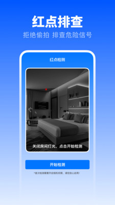 针孔摄像头检测专业版是一款能够轻松的帮助各位进行安全监控监测的软件,如今面对各种针孔摄像头的出现让人们防不胜防,所以为了能够最大程度的保护自己的安全,在平时对于监控的查找上,可以利用该软件轻松的找寻身边隐藏起来的邪恶针孔摄像头,通过一系列的高科技的手段进行安全的监测,将会利用多种实用功能快速的识别和找寻身边的镜头,让你在生活中保持更加安全的活动空间。
