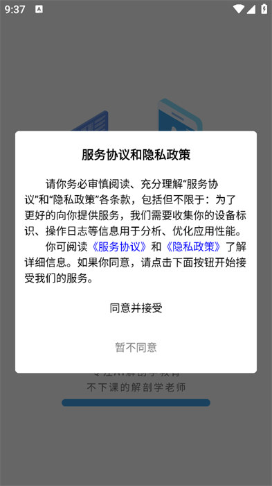 1、打开软件之后阅读隐私政策和用户协议,点击同意之后就能进入到软件;