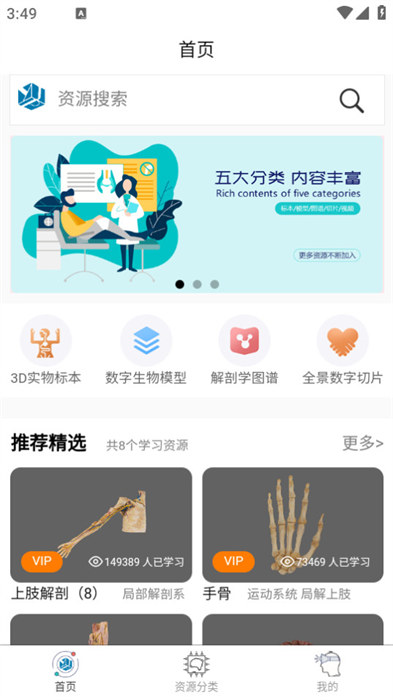云解剖是一款专门为了用户们进行医学教育打造出来的软件,这款软件里面集合了3D食物的标本和数字生物模型等五大类的资源内容,为用户们带来了十分丰富而且沉浸式的学习知识内容的环境,采用了高保真度的三维建模和虚拟现实的技术,能够拥有前所未有的学习知识内容的体验,可以全方位无死角的观察到人体的结构,能够细微的感受到每一个解剖层次和结构之间的关系,加深用户们对解剖学知识内容的理解和记忆,全部都是一些非常实用的知识内容供用户们去进行学习,有需要的用户们可以下载体验。