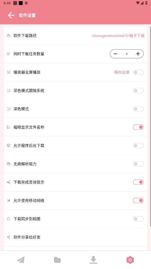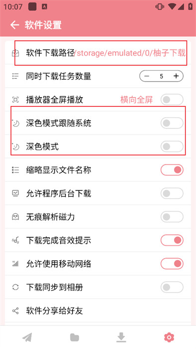 4、最后,切换到【设置】页面,这里能按照需求更换页面色彩,或者调整下载路径,操作起来非常的简单。