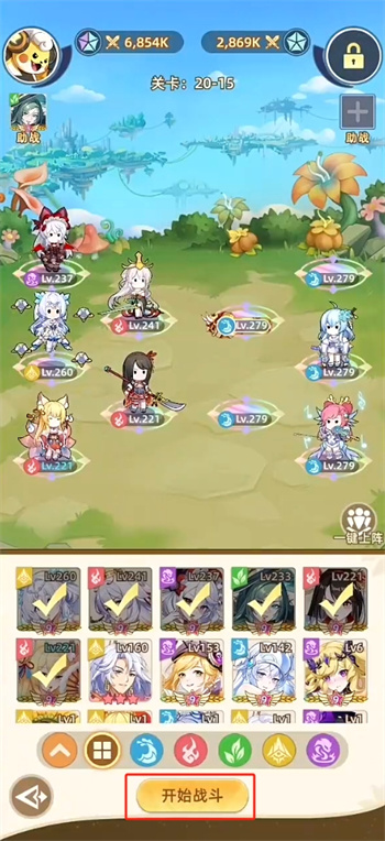 2、然后继续在这里选择确认自己的作战英雄阵容,根据敌方不同的敌人分布阵容组建出自己的英雄阵容,确保在之后的战斗里面获得胜利,然后点击【开始战斗】进行对抗;