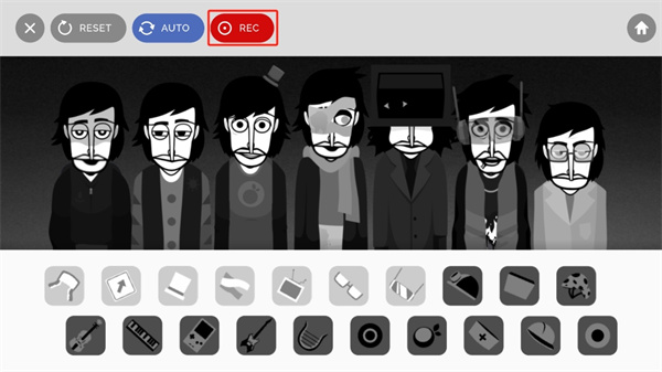 5、点击左上角的三条行图标,然后就会出现不同的选择,在搭配出自己满意的乐队演奏之后,可以点击【REC】录制按键对自己画面中的乐队演绎进行录制。
