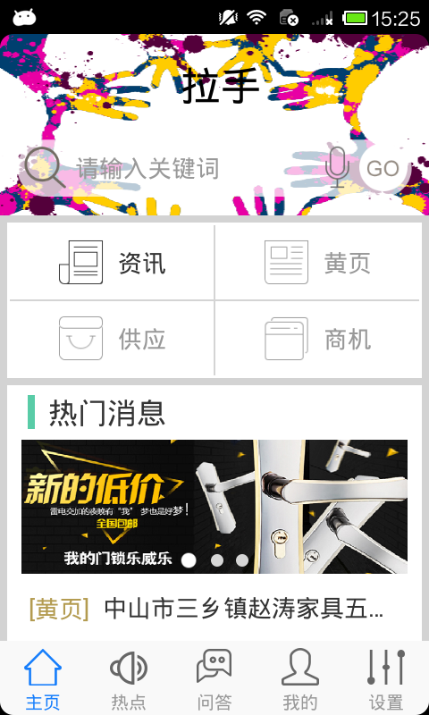 拉手app是一款为商家打造的软件。这里有最新和最热的资讯,还有无限的商机等待着你的恭候。商家只需要在拉手里面提交与自己商铺有关的关键字,就可以放广大的消费群众和客户更加便捷和快速的了解到你店铺和网站的详细信息。同时用户还可以在这里一键查询天气等,拉手值得你的拥有,欢迎下载!