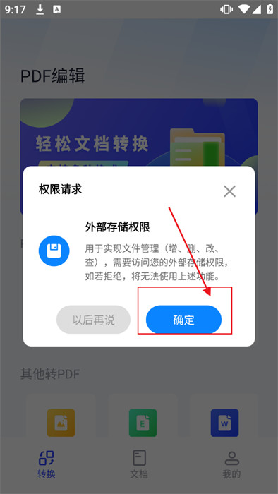 3、接着,点击工具需要获取到设备的权限,你可以点击【确定】能继续跳转页面;