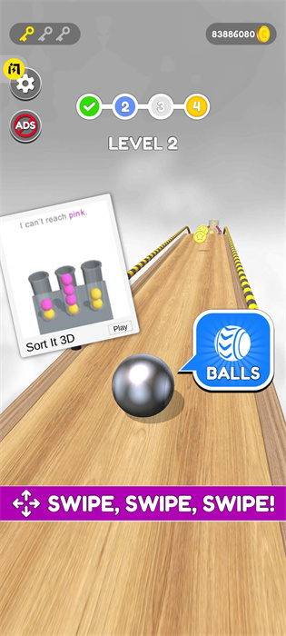 需要通过滑动的方式来进行小球的移动,移动过程中还需要收集一些金币和道具;