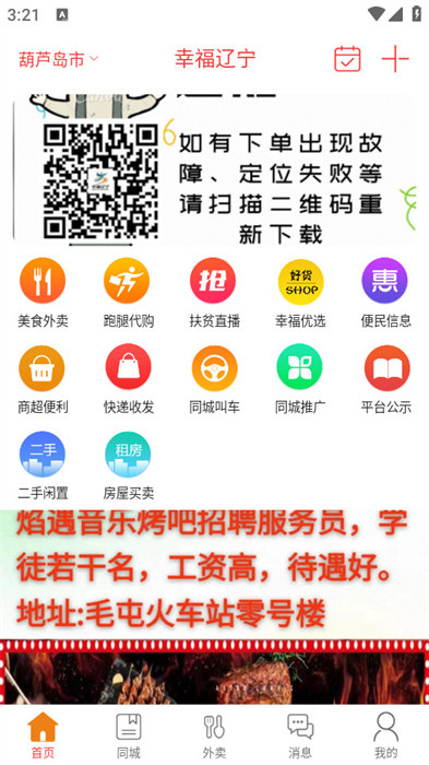 幸福辽宁app是一款专门为了辽宁本地的用户们使用生活服务内容打造出来的软件,这款软件里面拥有十分丰富的服务内容,涵盖了外卖和生活娱乐等许许多多方面的服务内容,更多用户们使用生活服务内容的需求基本上全部都能满足,为用户们带来了更加方便快捷的生活服务去进行使用,拥有最新的同城资讯的信息内容,用户们足不出户就可以了解到新闻资讯的内容,而且还支持用户们使用语音播报的功能去播放新闻资讯的内容,这样不用看就可以了解到新闻资讯的内容了,有需要的用户们可以下载体验。