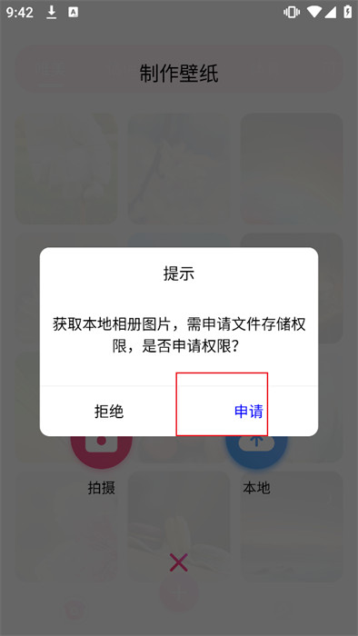 3、接着,还需要获取设备的权限,这样才能了解到相册内的所有照片;