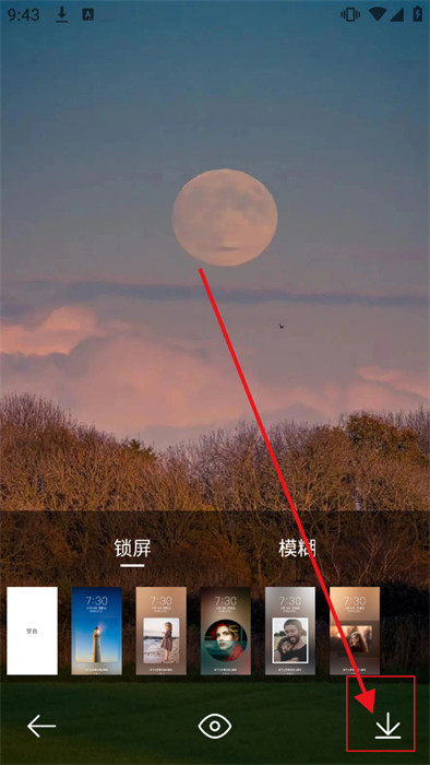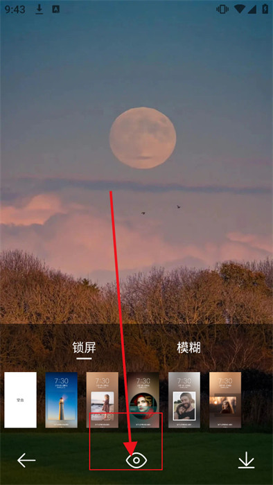 4、紧接着,将照片导入,点击中间的小眼睛按钮,就能在线进行预览,对锁屏页面了解的更清晰;