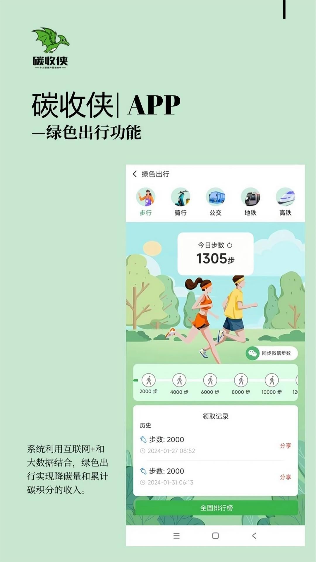 会自动记录下用户们自己个人每一天的步数信息并且参与到排行榜里面,见证到自己的环保足迹;