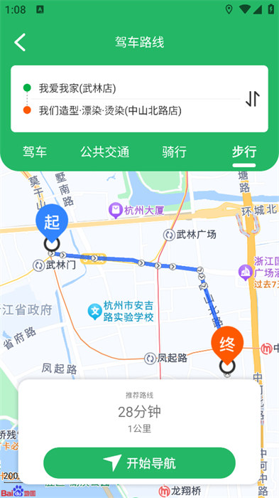 3、还能够切换成步行的路线去进行导航的操作,更加的精准方便;