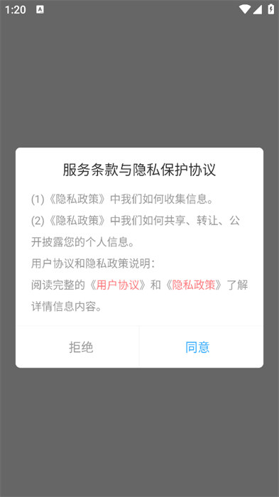 1、打开软件之后阅读隐私政策和用户协议,点击同意之后就能进入到软件;