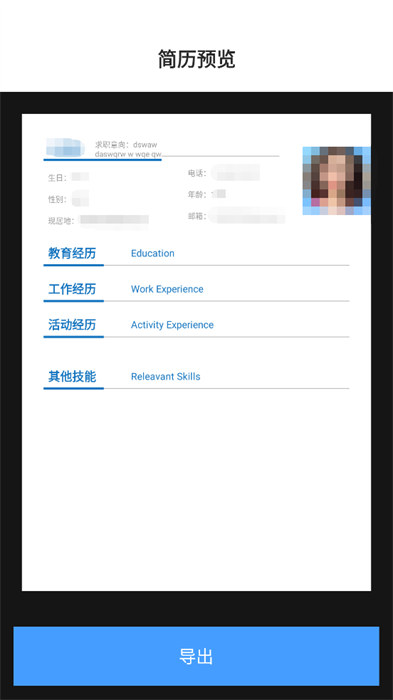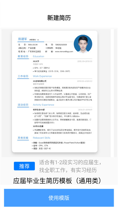 5、选择适合的简历模版填写完自己的相关信息,之后就能预览自己编辑完成的简历。