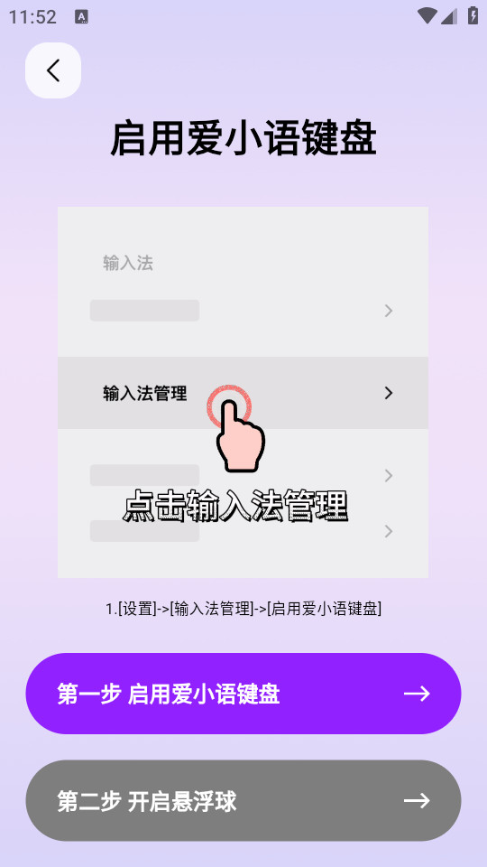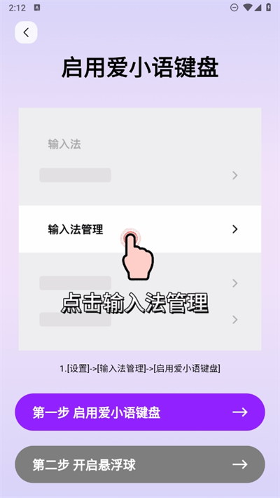 3、接着会来到设置默认输入法的步骤教学,跟随步骤1完成输入法管理启用该键盘;