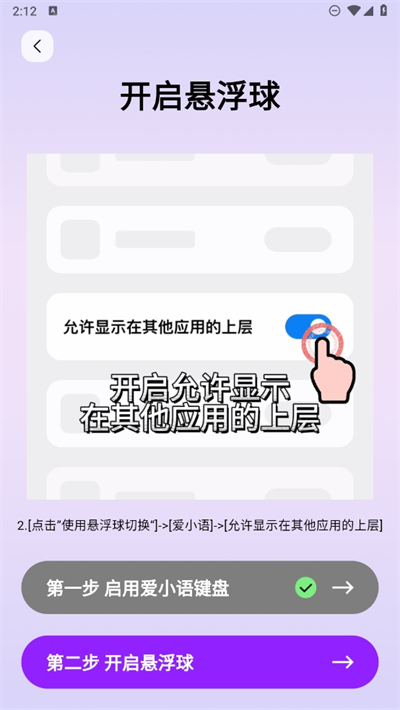 4、接着开启悬浮球功能,需要允许显示在其他应用的上层显示;