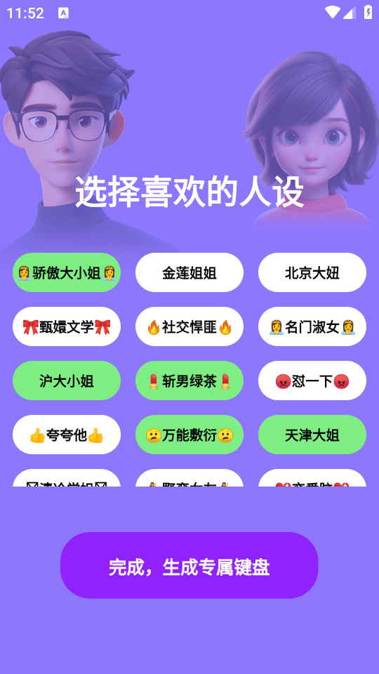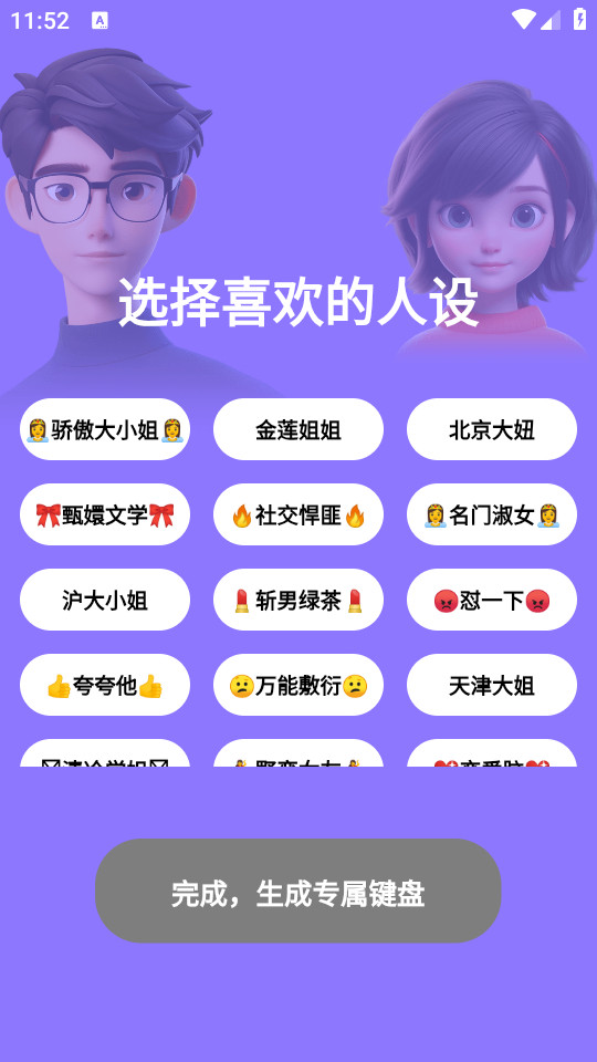 2、紧接着需要选择输入法的性格人设,多种人设可以自由选择后续也可更换人设哦;