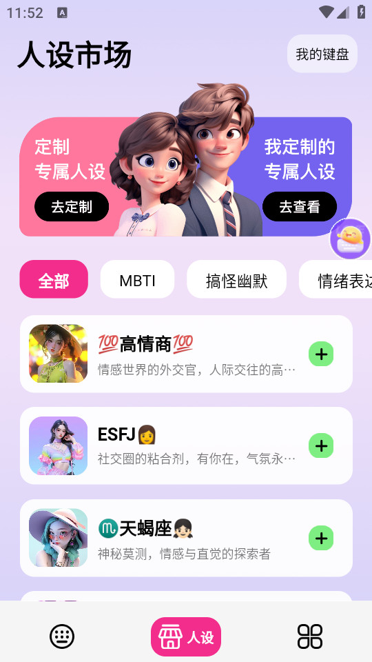 为用户们带来多种不同的人设角色选择,让键盘的使用也会更加的生动起来;