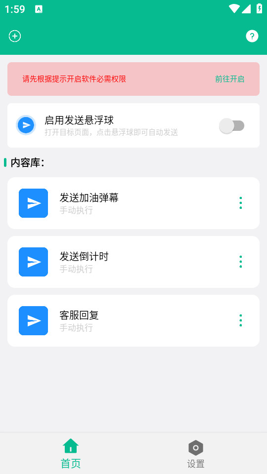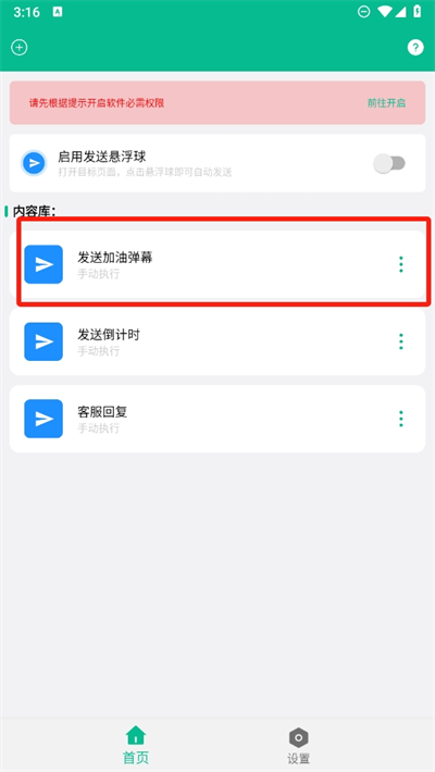 在使用上为了方便发送内容信息,可以开启悬浮球功能快速发送使用;