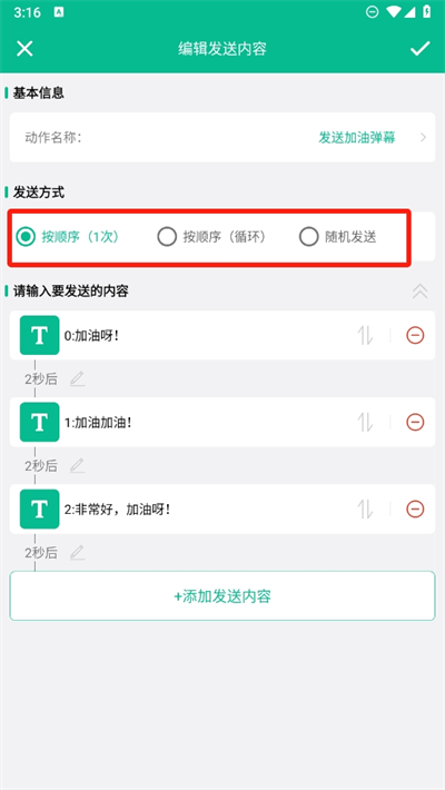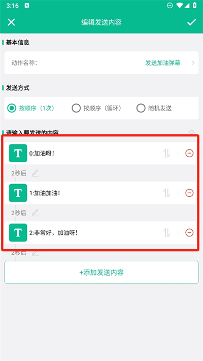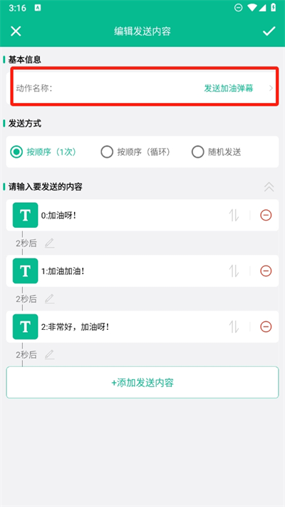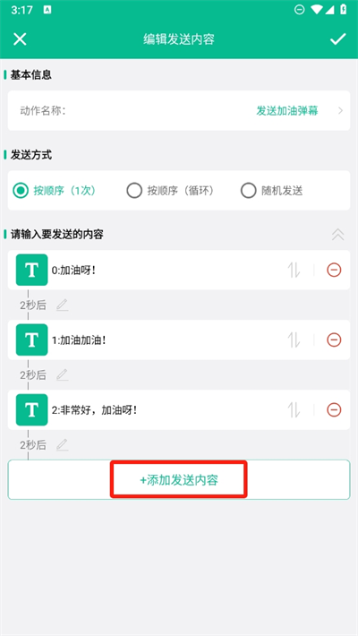 4、这里可以更改发送弹幕的文字内容,将会自动发送这里的文字并循环发送;