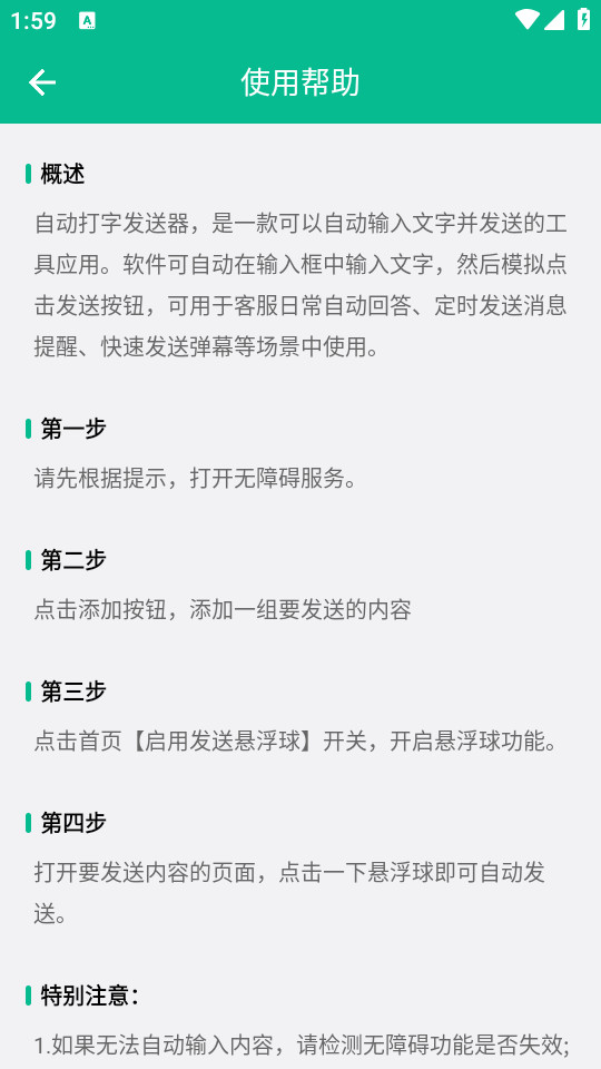 自动打字发送器app能够实现实现文字发送的软件,该软件只需要提前编辑好自己想要发送的文字后就能直接进行消息的发送,为用户们提供更加专业的文字自动发送的功能,那么在使用的过程中大家在使用上可以带来更加便捷化的功能,这种方式也十分适用于多个场合对于文字快速发送的场景,比如在游戏中、开会中、直播中等不同的场景,实现快速的评论功能大大提高用户们的评论发送的速度需求。
