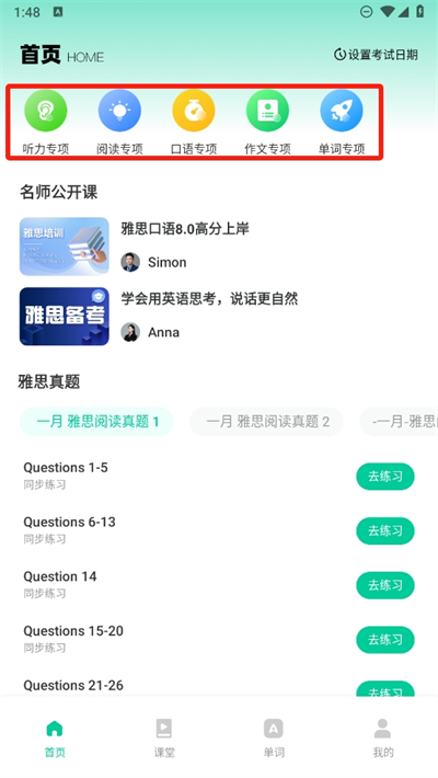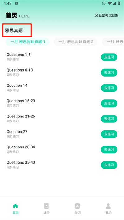 4、英语考试离不开雅思真题的需求,所以该平台可以看到有关雅思阅读所有的真题学习。