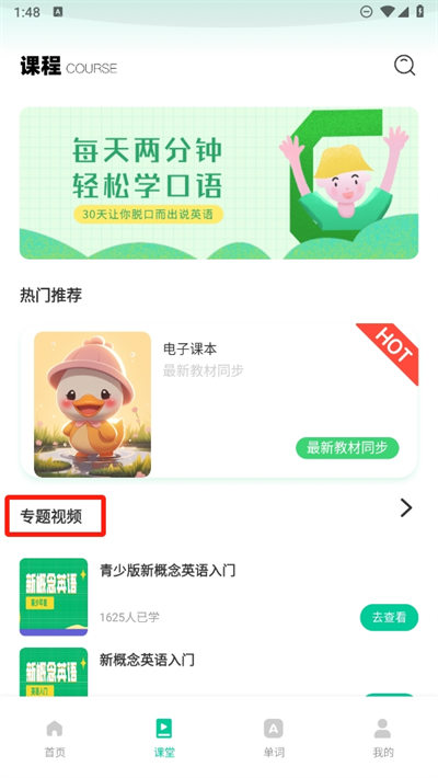 内置超多的英语教学资料可以学习,教材更是可以与课堂同步学习;
